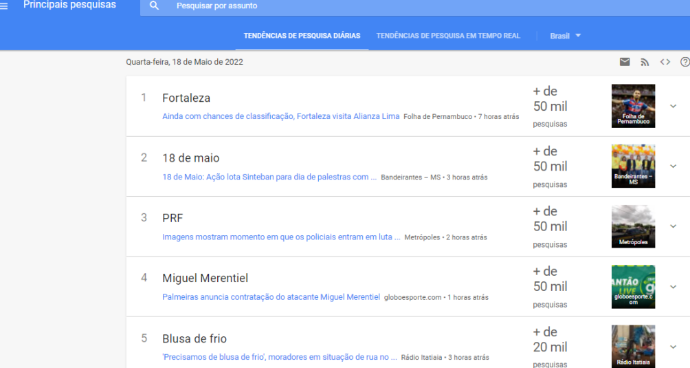 Essa funcionalidade segue a mesma lógica do “Trending Topics” do Twitter, oferecendo insights valiosos para profissionais de SEO, marketing digital e criação de conteúdo.