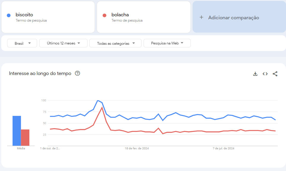 Ao analisar dados no Google Trends, é fundamental comparar tópicos com outros tópicos e termos de pesquisa com outros termos de pesquisa. Misturar categorias pode gerar comparações imprecisas, já que os tópicos abrangem um conjunto mais amplo de variações e palavras relacionadas.