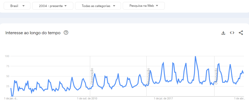 Para esclarecer essas questões, o Google produziu uma série de materiais explicativos sobre o Trends. A seguir, apresentamos uma análise detalhada, com gráficos e comentários da equipe da SEO Happy Hour.