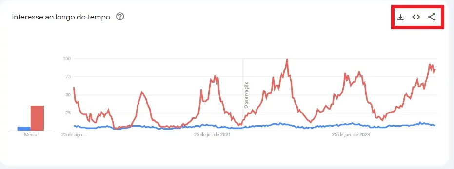 Opções de exportação e compartilhamento no Google Trends